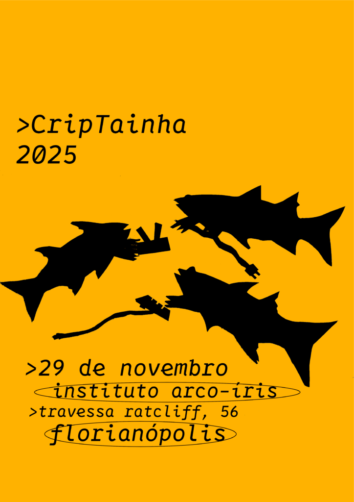 O objetivo da CripTainha é organizar um encontro para debates, experimentações e conspirações sobre tecnopolítica. O eixo temático deste ano é “Nossas redes fazemos nós! Autonomias em tempo de colapsos.”. Se está em dúvida sobre o que se trata, ou porque têm tainha rumo a Floripa em plena primavera, consulte a nossa Introdução e nossas Perguntas Frequentes.